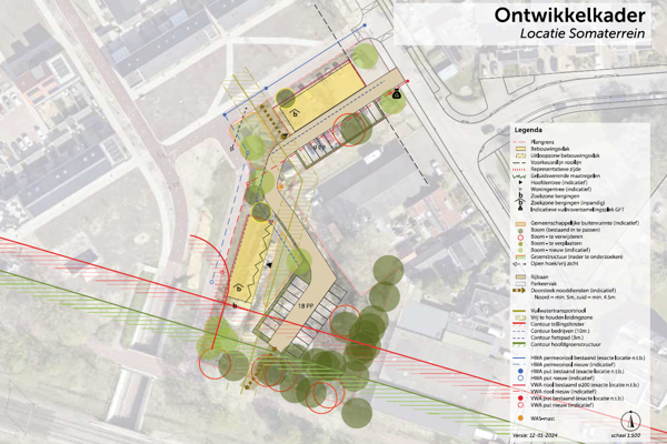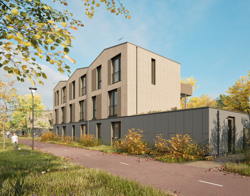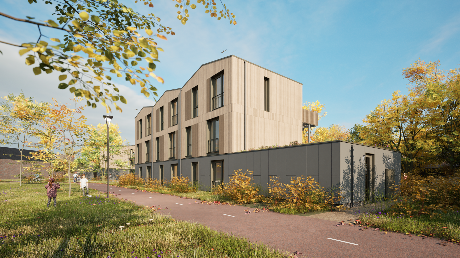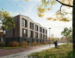 Bij de fietstunnel van het somaterrein bouwen we ongeveer 23 appartementen. Het gebouw blijft minstens 20 jaar staan.