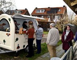 Samen genieten in een prachtige nieuwe wijk. Dat is de gedachte achter het cadeau dat Woonstede, Van Wijnen en Koopmans Bouwgroep schenken aan de nieuwe Kolkakkerbuurt. Samen met de bewoners, wijkteam en gemeente wordt gekeken waar behoefte aan is. Bijvoorbeeld een bankje in het nog aan te leggen parkje of een bewegingsroute door de wijk. Tijdens het opleverfeest overhandigden de directeuren van de organisaties daarom een symbolische cadeaubon aan Marcel Boertien, die deze namens de bewoners in ontvangst nam.